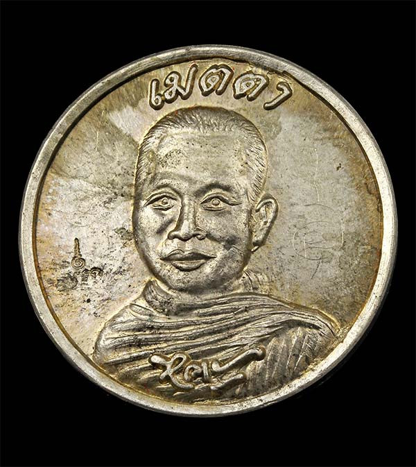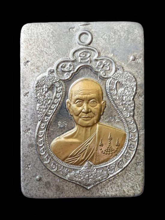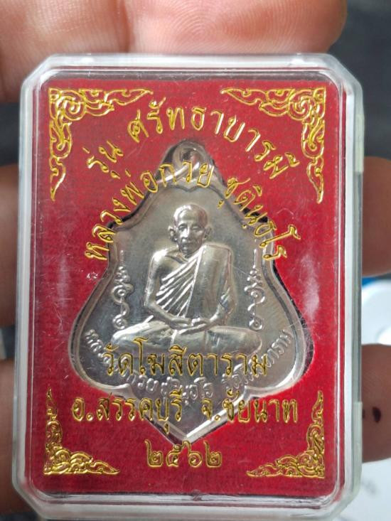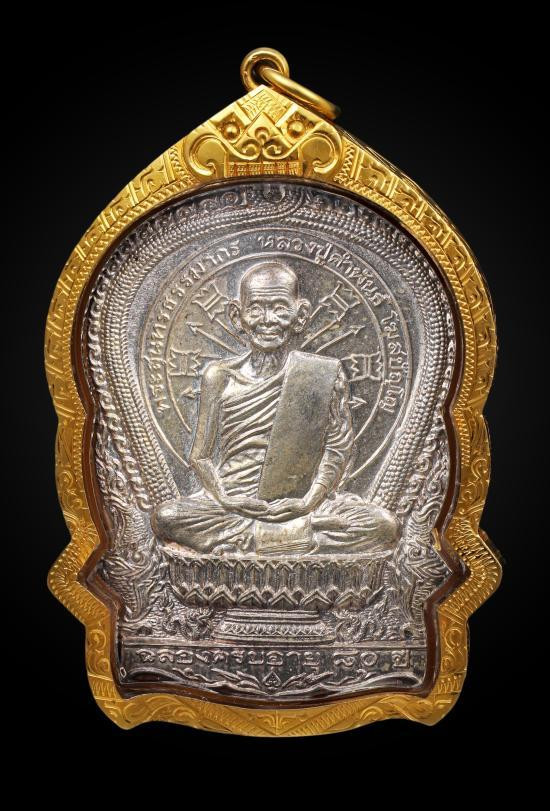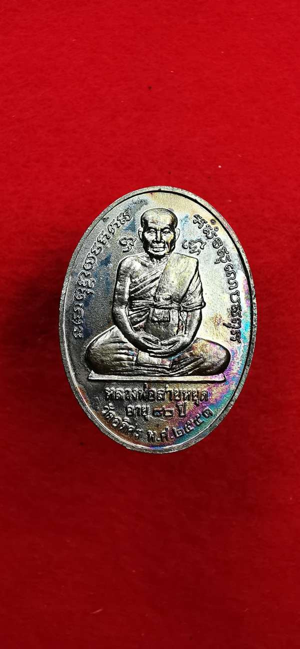 หลวงพ่อสายหยุด วัดอดิศร อ.ลำลูกกา จ.ปทุมธานี รุ่นอายุ 80 ปี พ.ศ. 2551 เนื้อเงินพร้อมกล่องเดิม |