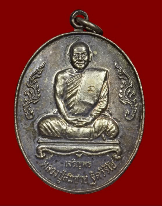 เหรียญเจริญพร หลวงพ่อสมชาย วัดเขาสุกิม จ.จันทบุรี เนื้อเงิน หายาก |
