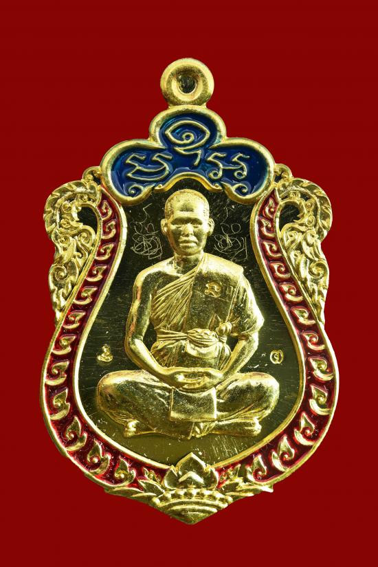 เหรียญเสมา รุ่น มงคลบารมี 57 หลวงพ่อรวย วัดตะโก จ.อยุธยา เนื้อทองแดงชุบทองลงยา ปี2557 แดงเคาะแรก |