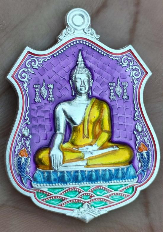 เหรียญเสมา หลวงพ่อหุน วัดบางผึ้ง เงินลงยาหน้าทองคำแท้ ปี 2554 เลข ๔๙ เลี่ยมพลาสติกรักษาผิว |