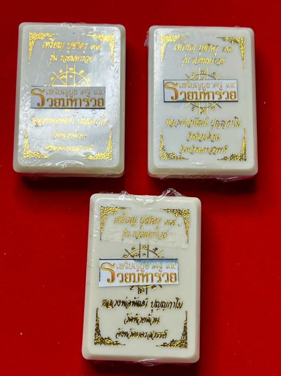 ลุ้นไม่แกะซีล หลวงพ่อพัฒน์ ปุญฺญกาโม วัดห้วยด้วน รุ่น รวยมหารวย เหรียญบุชาครู 99 ( 1 กระดาน 3 องค์)) |