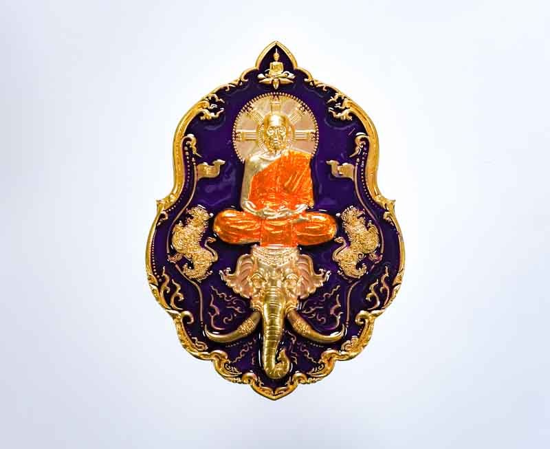 เหรียญพระปิดตาพังพระกาฬ หลังพหุรมาน หลวงปู่มหาศิลา สิริจันโท รุ่นรวยโชคอนันต์ เนื้อทองฝาบาตร ลงยาน้ำเงิน no.560 แยกจากชุดกรรมการลงยา กล่องเดิม |