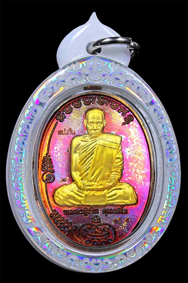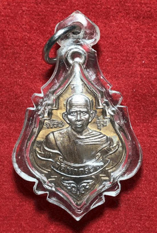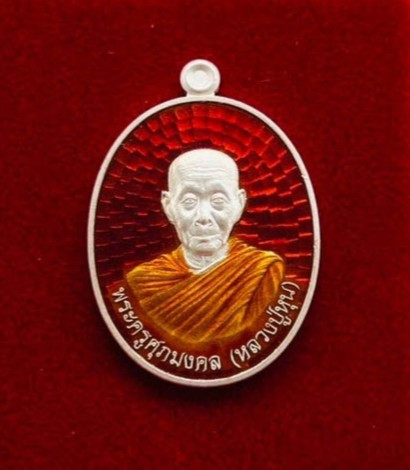 วัดใจ เหรียญไข่ 8 รอบ ศุภมงคล หลวงปู่หุน วัดบางผึ้ง จ.ฉะเชิงเทรา เนื้อเงินลงยาสีแดง เลข63 |