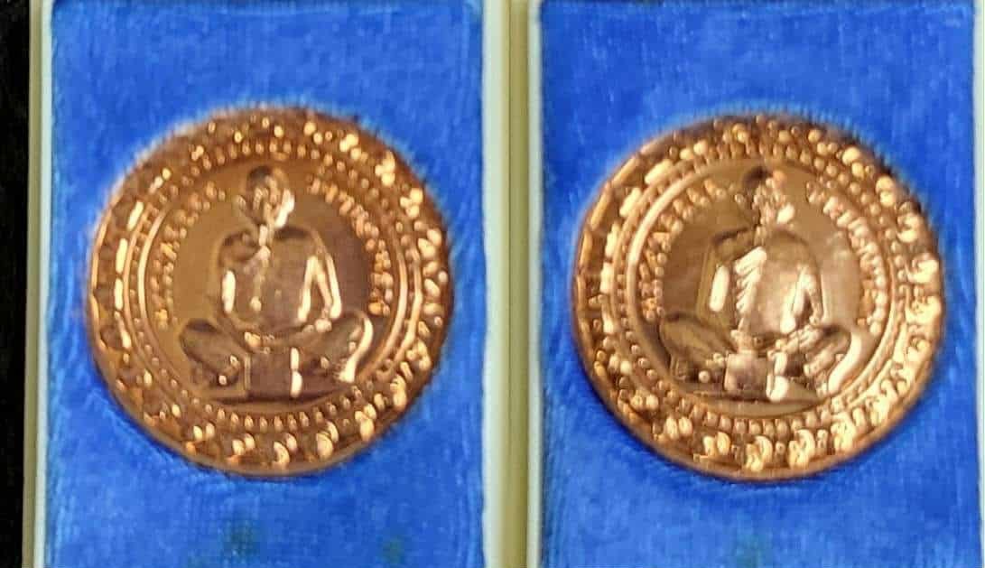 เหรียญพิมพ์นั่งพาน รุ่น 1 หลวงพ่อสวัสดิ์ ปุณณสีโล เนื้อเงินลงยาสีทอง(พระเกตุ) หมายเลข 7 วัดใจเคาะแรก!!! |