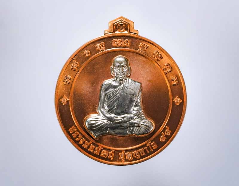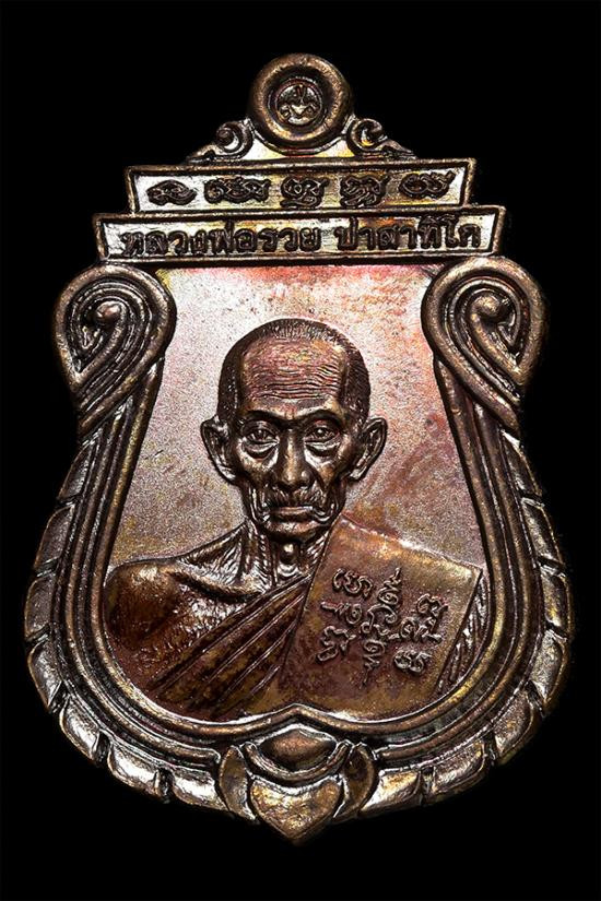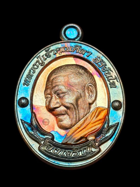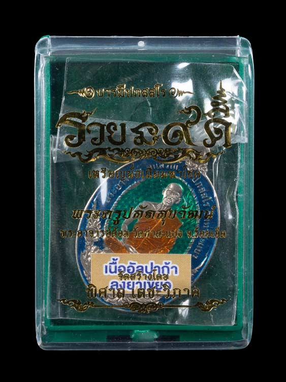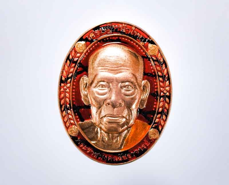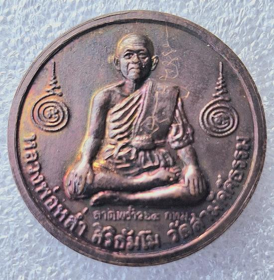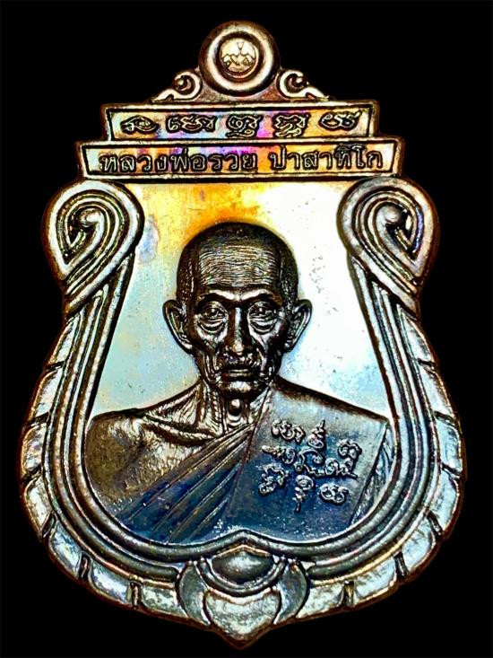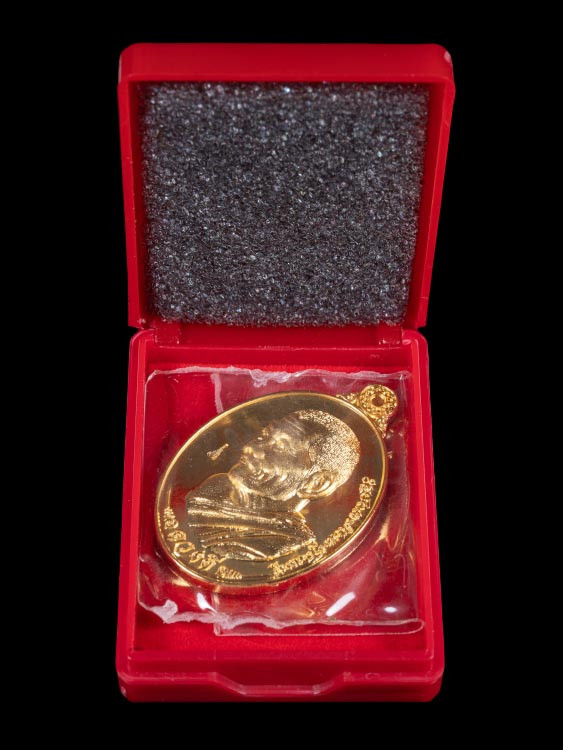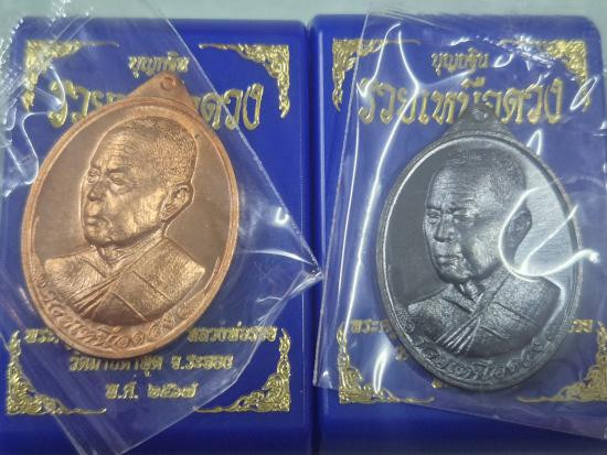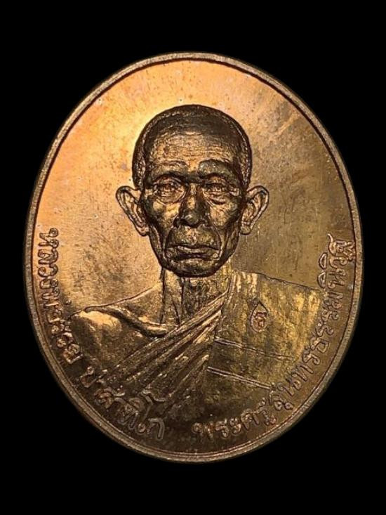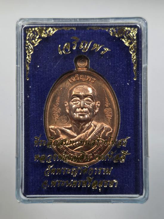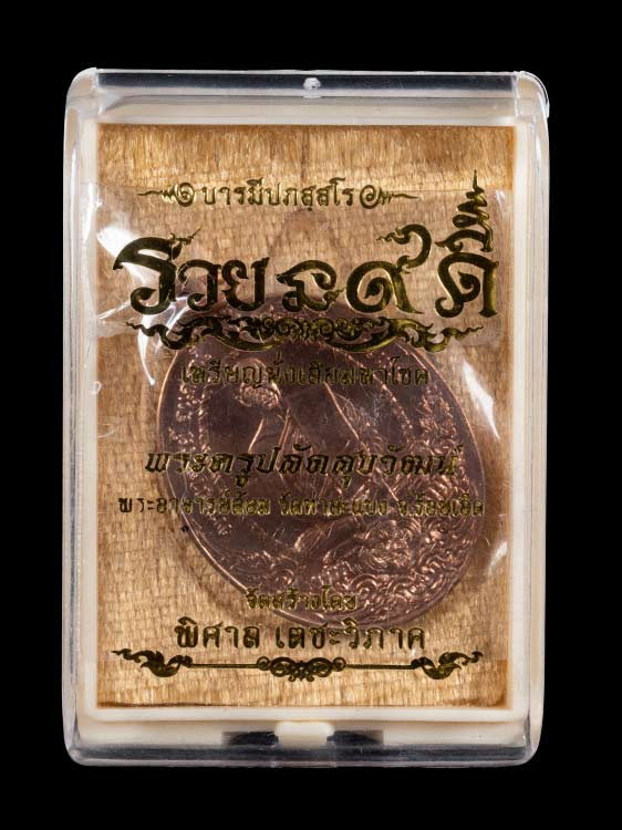เหรียญหลวงพ่อรวยรุ่นอายุวัฒนมงคล เนื้อทองแดงรมดำ พร้อมกล่องเดิม |