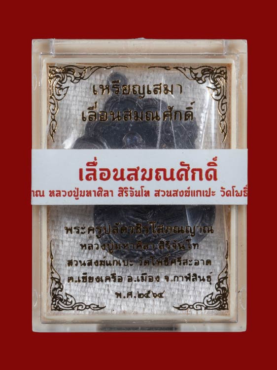 เหรียญ เสมา สมปรารถนา ปี64 หลวงปู่มหาศิลา หลวงปู่ศิลา สิริจันโท สวนสงฆ์แกเปะ วัดโพธิ์ศรีสะอาด จ.กาฬสินธุ์ เนื้อทองทิพย์ เลข ๑๗๔๐ มีกล่องเดิม |