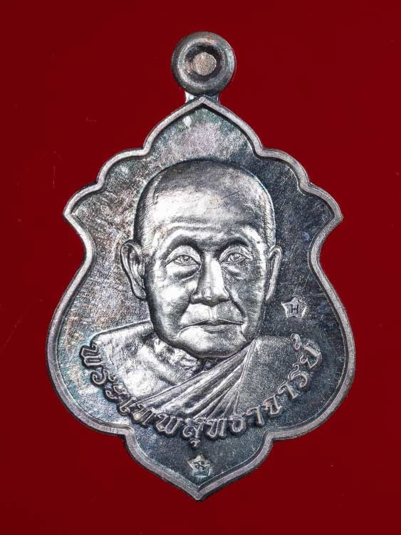 วัดใจ หลวงปู่โต๊ะ เหรียญรุ่นปลดหนี้ ออกวัดถ้ำสิงโตทอง เนื้อเงินซาติน ลงยาจีวรพื้นสีแดง No.13 |