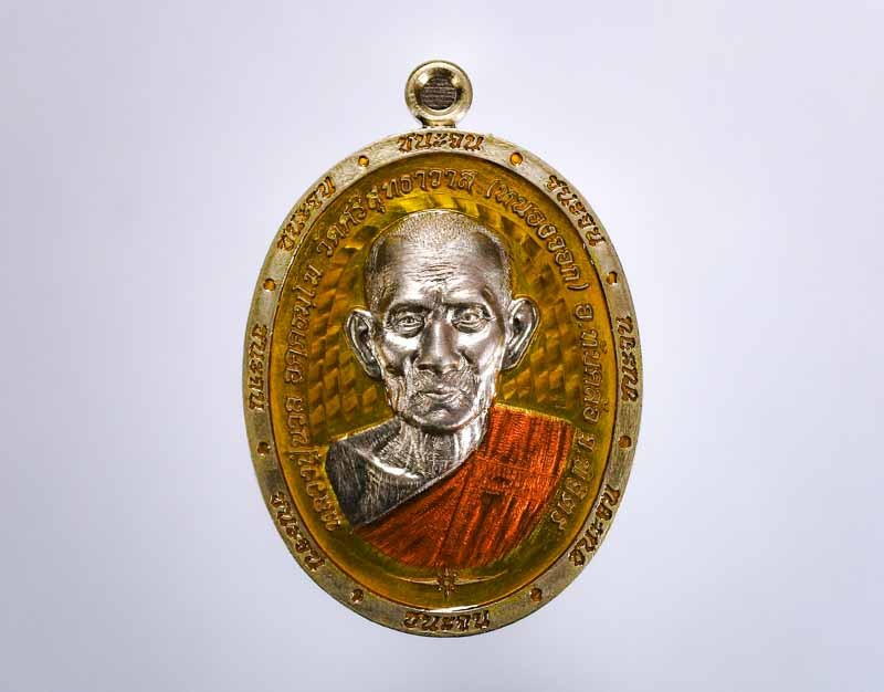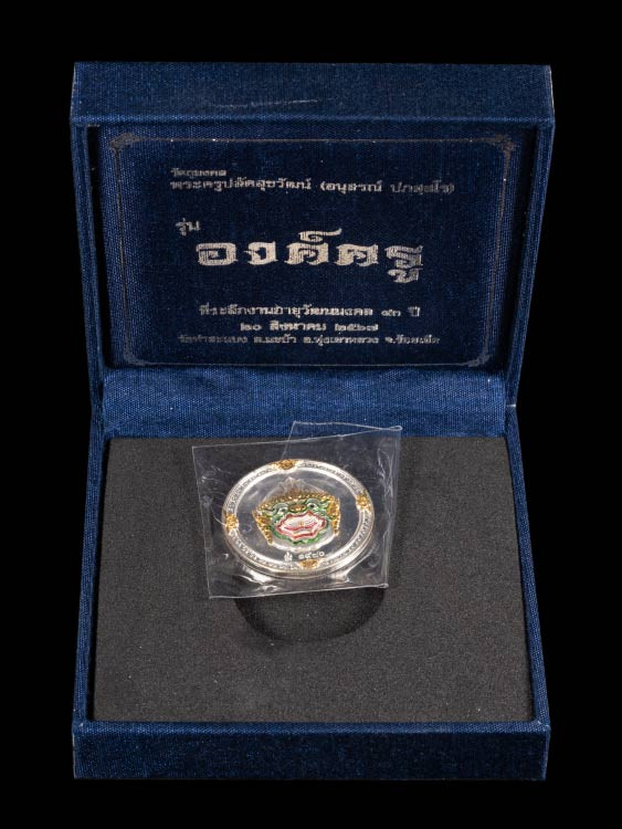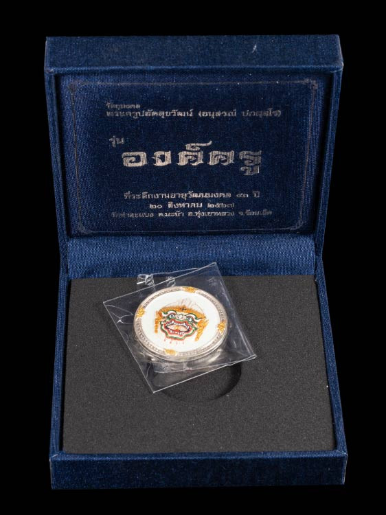 เหรียญดวงดี หลวงพ่อเพิ่ม วัดป้องแก้ว ปี2562 เนื้อเงินลงยาแดงหน้ากากทองคำ No.1177 พร้อมกล่อง (สวยเดิม ไม่ผ่านการใช้) |