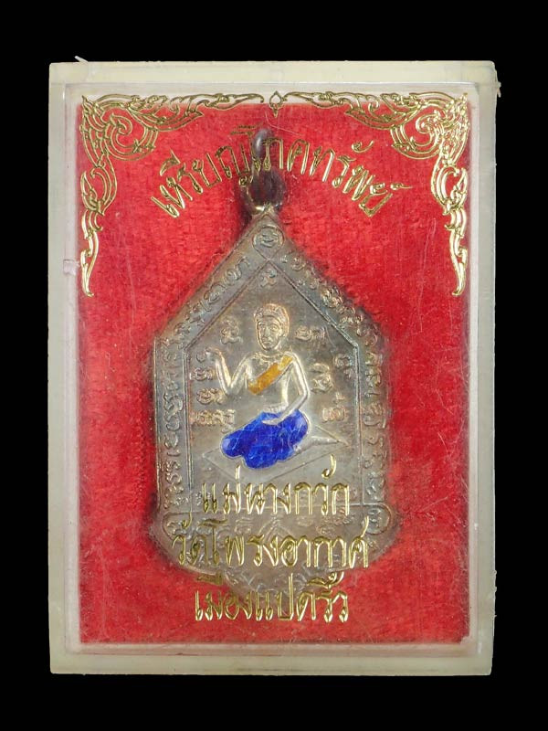 เหรียญพ่อแก่ รุ่นเศรษฐี หลวงปู่ฝั้น ปสาโถ วัดศรีถมอรัตน์(หน้าผา)จ.เพชรบูรณ์เนื้อตะกั่วหลังเรียบ ฝังตักรุด เงิน-ทอง-นาก จารมือ หน้ากากทองแดง เลี่ยมกรอบทอง ตอกโค๊ต ต .ก. ตอกหมายเลข 13 |