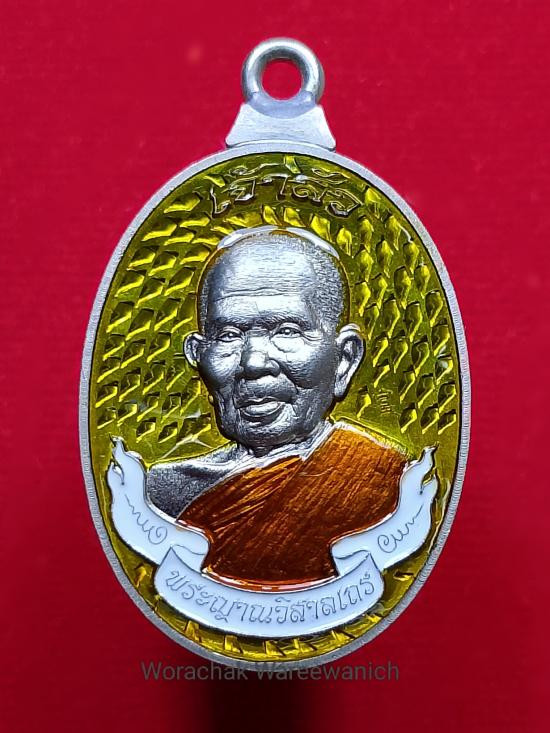 วัดใจไปเลย เหรียญพัดยศหลวงพ่อบุญธรรม วัดหลักสี่ราษฎร์สโมสร ปี 2559 เนื้อเงินลงยา |