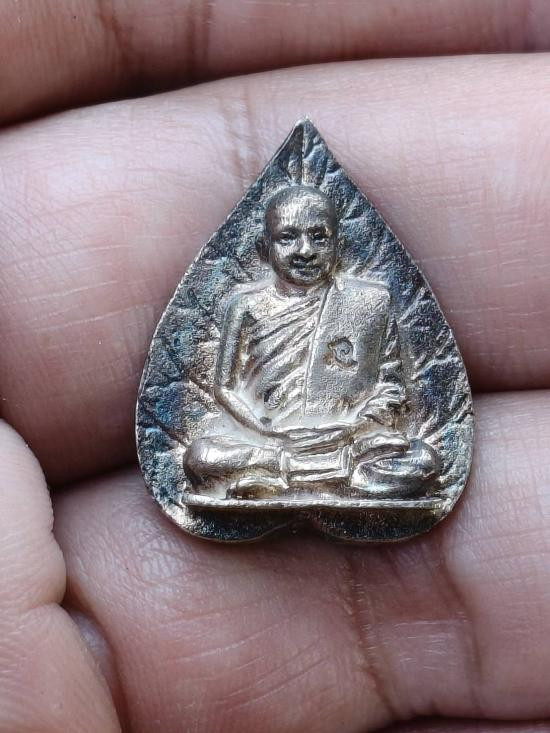 "เคาะเดียว"รูปหล่อใบโพธิ์หลวงพ่อประดิษฐ์ วัดถ้ำเขาเขียว จ.สระบุรี ปี2536 เนื้อเงิน กล่องเดิม |