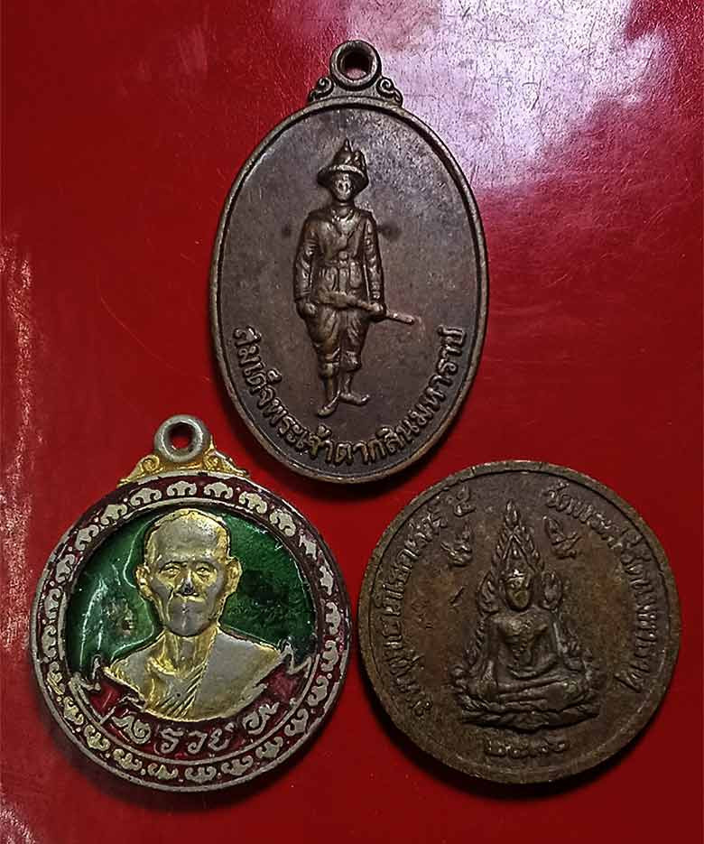 ***วัดใจ 10.-*** (3 องค์) เหรียญพระเจ้าตากสินมหาราช รพ.ตากสิน ปี35 (หลวงปู่แผ้ว วัดรางหมัน ปลุกเสก) + เหรียญหลวงพ่อรวย วัดตะโก ออกที่วัดห้วยเจริญผล จ.ราชบุรี ปี37 (เสาร์ห้า) ทันท่านเสก + เหรียญพระพุทธ |