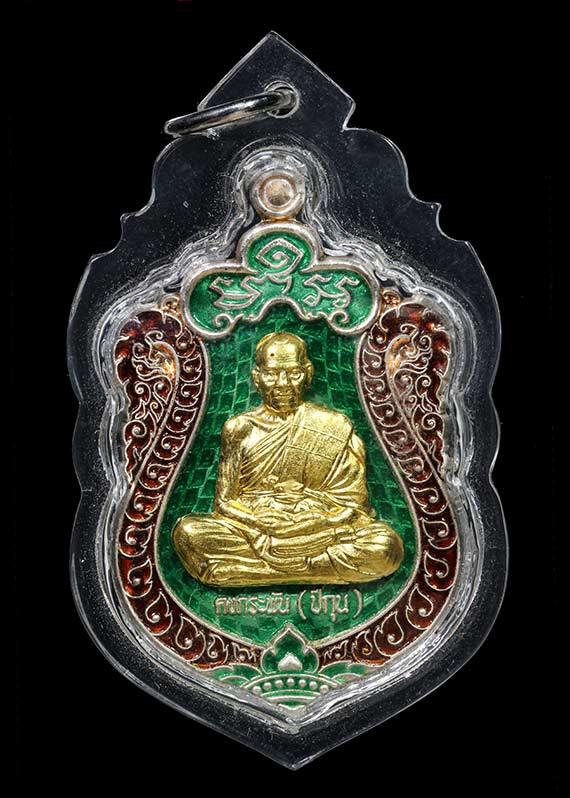 เหรียญพญาครุฑ หลวงปู่ศิลา วัดโพธิ์ศรีสะอาด รุ่นยอดบารมี ลังนำฤกษ์ เนื้ออาบเงินโบราณ ลงยาทรงเครื่อง ลงยาปีกครุฑ พื้นเขียว เลี่ยมกรอบชุบน้ำทอง No.16 |