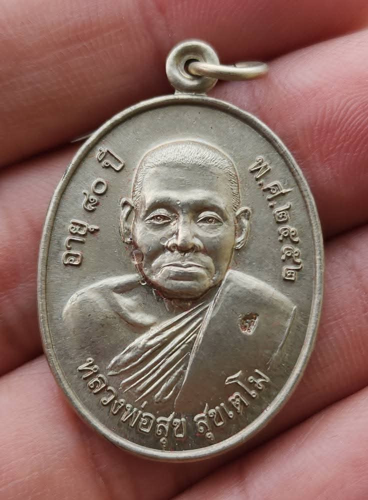 *วัดใจ* เหรียญหลวงพ่อทองสุข ออกวัดมฤคทายวัน เนื้อกะไหล่ทองหลังพอกครั่ง จ.เพชรบุรี |