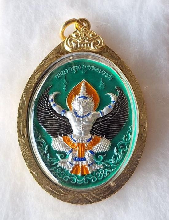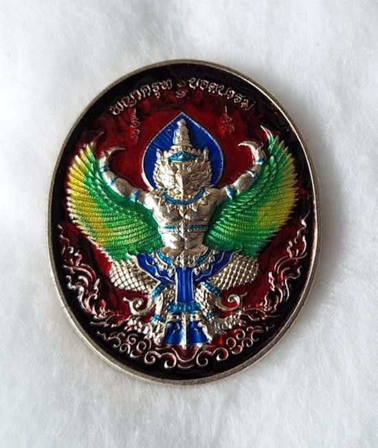 เหรียญพญาครุฑ หลวงปู่ศิลา วัดโพธิ์ศรีสะอาด รุ่นยอดบารมี ลังนำฤกษ์ เนื้ออัลปาก้า ลงยาทรงเครื่อง ลงยาปีกครุฑ No.5 |