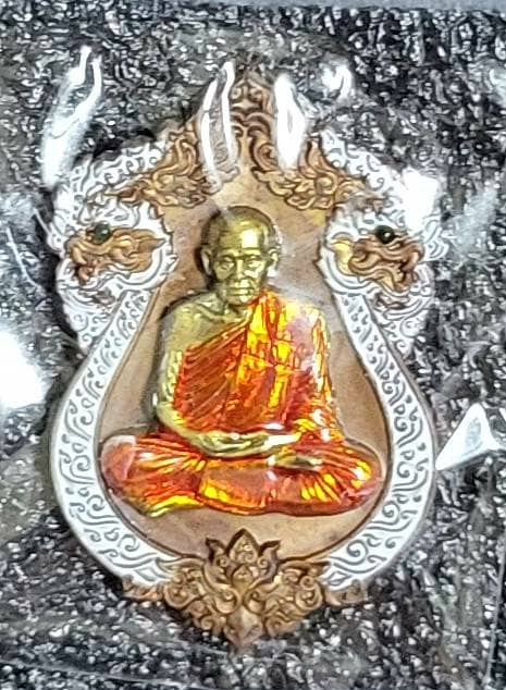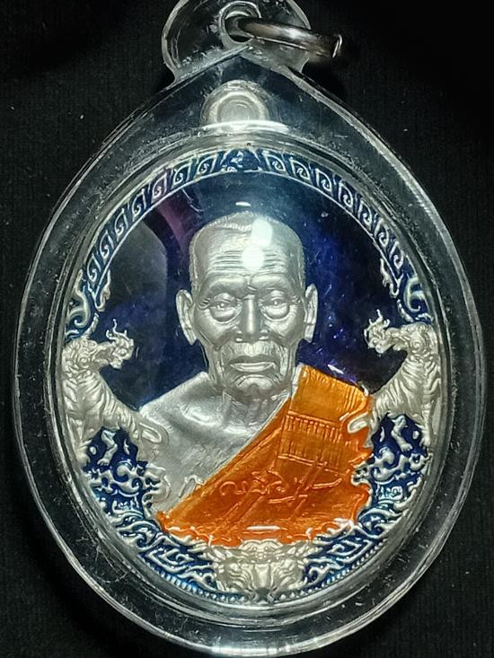 เคาะเดียวแดง เหรียญหลวงพ่อพัฒน์ รุ่นราชาพยัคฆ์ เนื้อเงินลายเสือ ลงยาแดง ลงยาจีวร |