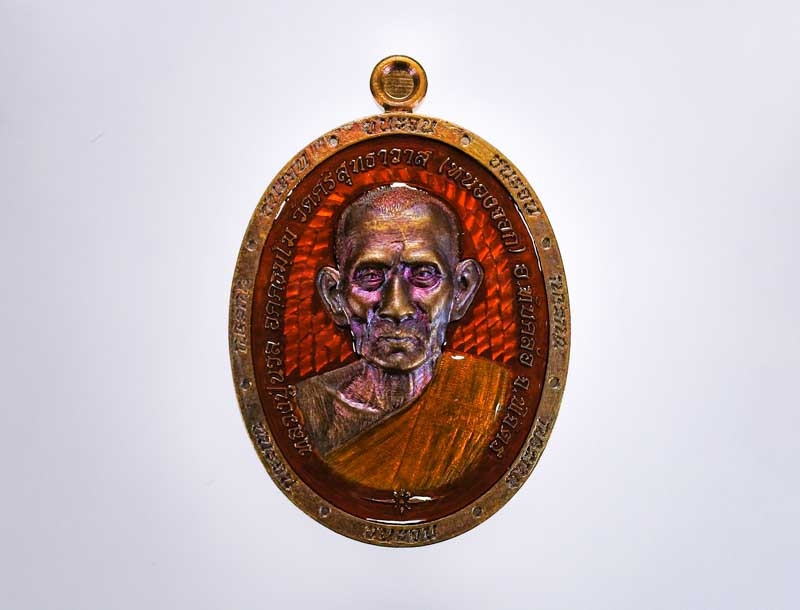 เหรียญเจริญพระล่าง เนื้อทองแดงเถื่อน ลงยาแสด ลงยาจีวร หลวงปู่ฝั้น วัดศรีถมอรัตน์(หน้าผา) เพชรบูรณ์ |