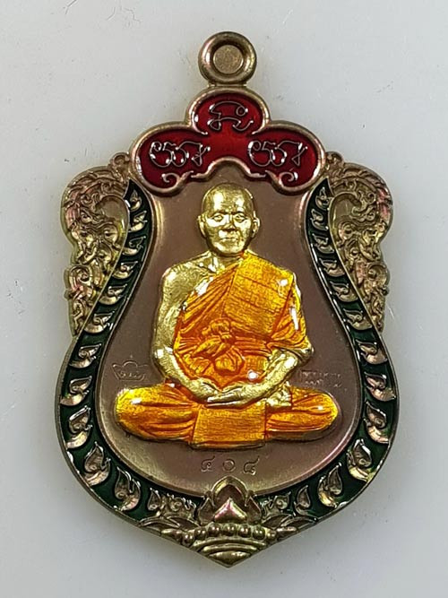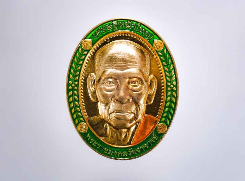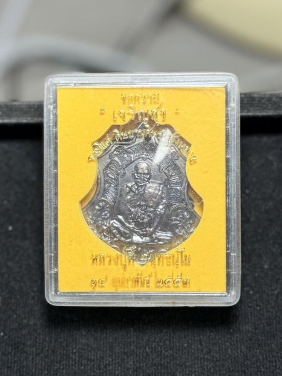 เหรียญหลวงปู่บุญ วัดปอแดง แห่งสวนนิพพาน โคราช ปี2554 รุ่นเจร ิญพร เนื้อกะไหล่เงินลงยาเขียวจีวรเหลือง |