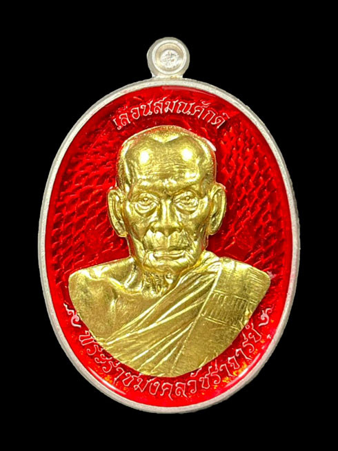 ''วัดใจ''เหรียญเลื่อนสมณศักดิ์ หลวงพ่อพัฒน์ ปุญฺญกาโม วัดห้วยด้วน จ.นครสวรรค์ เนื้อเงินลงยาแดงหน้ากากทองคำ หมายเลข 9780 |
