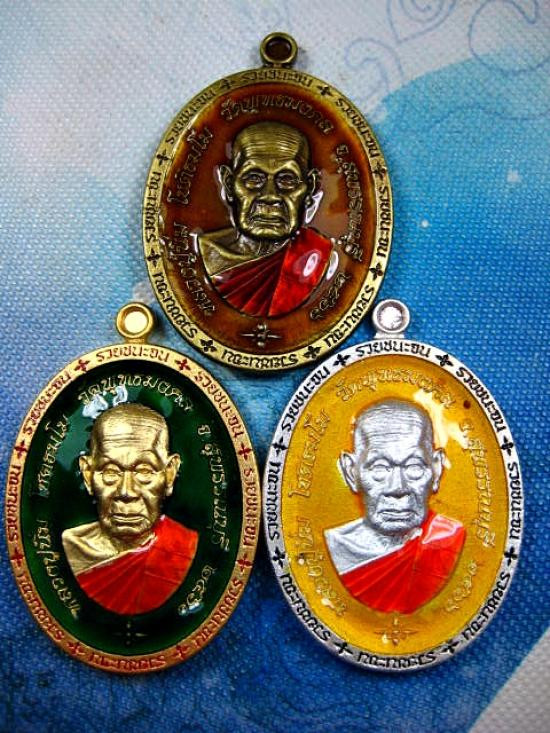 เหรียญรุ่นรวยชนะจน หลวงปู่นิ่ม โชติธัมโม วัดพุทธมงคล จ.สุพรรณบุรี 3 เหรียญ 3 เนื้อ ลงยา (---A15---) |
