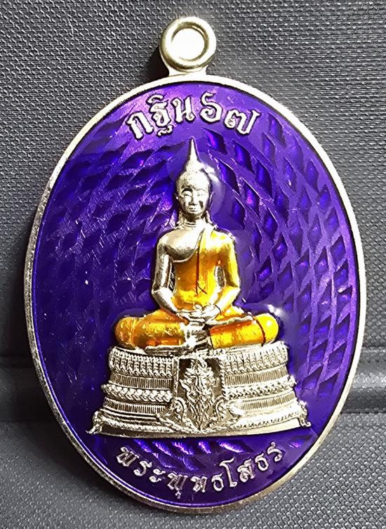 เหรียญหลวงพ่อโสธร หลังนาคเกี้ยว รุ่น"กฐิน๖๗" ออกวัดโพธิ์ศรีสะอาด กาฬสินธุ์ (รุ่นนี้ปลุกเสก 3 วาระ วาระแรก..หลวงปู่มหาศิลาเสกให้เมื่อ ตุลาคม ๒๕๖๗) เนื้ออัลปาก้าคุ้ยพื้น ลงยาม่วง ลงยาจีวร หมายเลข ๑๕๔. |
