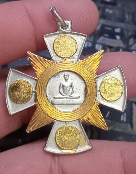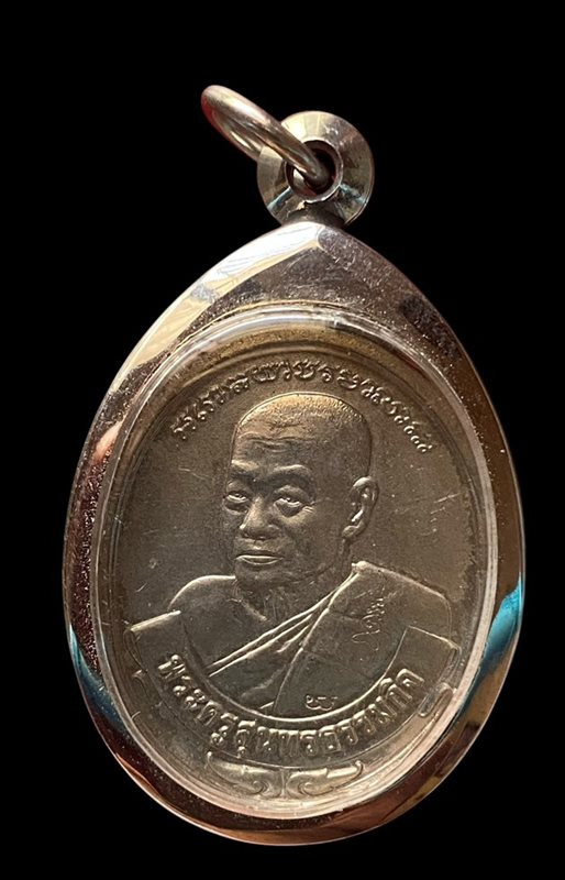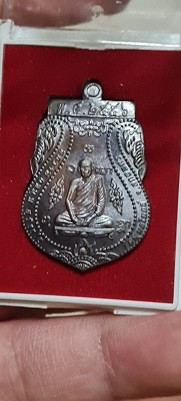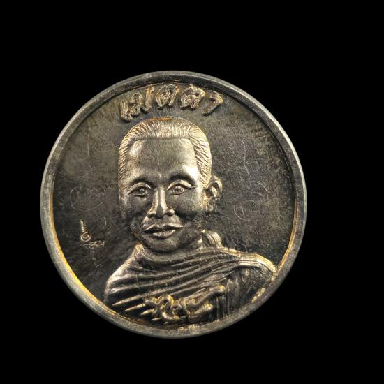 เหรียญนั่งพาน เนื้อนวะหน้ากากเงิน ด้านหลังเป็นยันต์ จารมือ พระครูปลัดวิชัย วัดสันติวิหาร สระบุรี เลข 1251 แดงเคาะแรก |