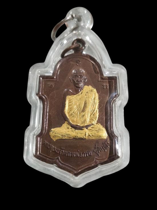 เหรียญมหาเศรษฐีหลวงพ่อชำนาญ ออกวัดบางกุฎีทอง เนื้อทองแดง สร้างปี2549 มีจาร เลี่ยมพลาสติก |