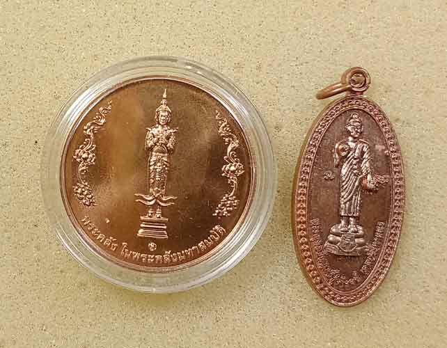 เหรียญเจริญพร 2 เนื้อทองแดงหน้ากากเงิน + เหรียญนั่งพาน วัดห้วยด้วนเนื้อชนวน หลวงพ่อพัฒน์ วัดห้วยด้วน (---A16---) |