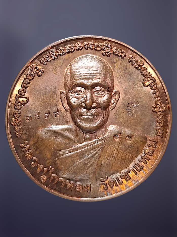 !!! 100 ทุกรายการ !!! เหรียญหลวงพ่อกลั่น วัดพระญาติ รุ่น "มงคลลาภ" ปี 36 ตอกโค๊ต เนื้อทองแดง |