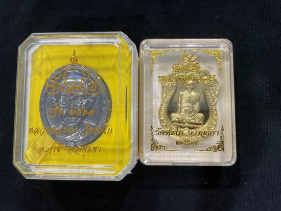 เหรียญไตรมาส59 หลวงพ่อรวย เนื้ออัลปาก้าพร้อมกล่อง |