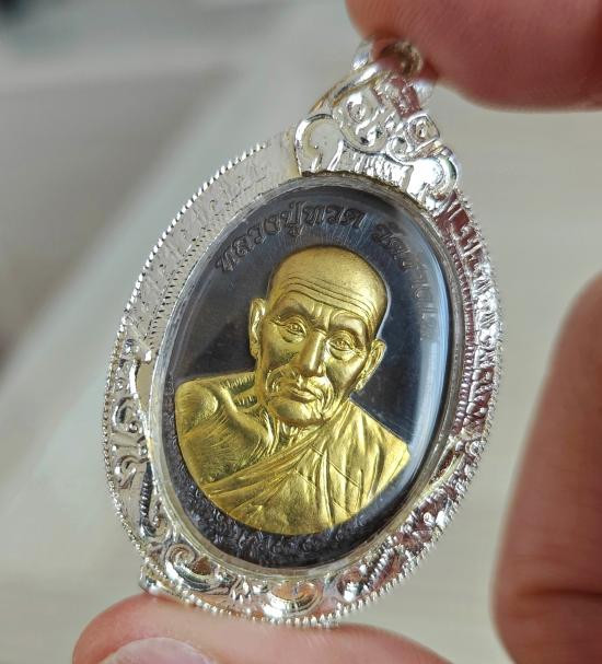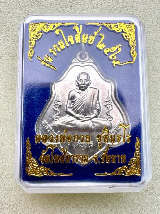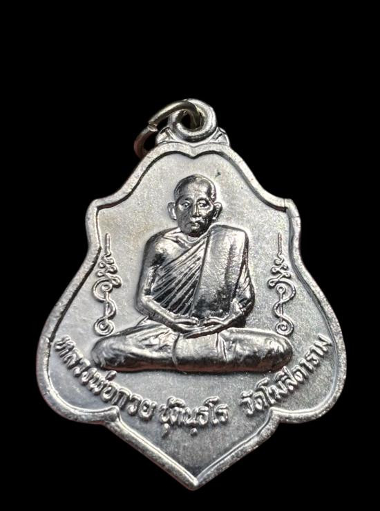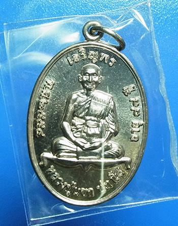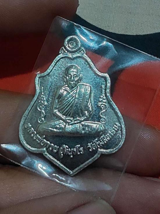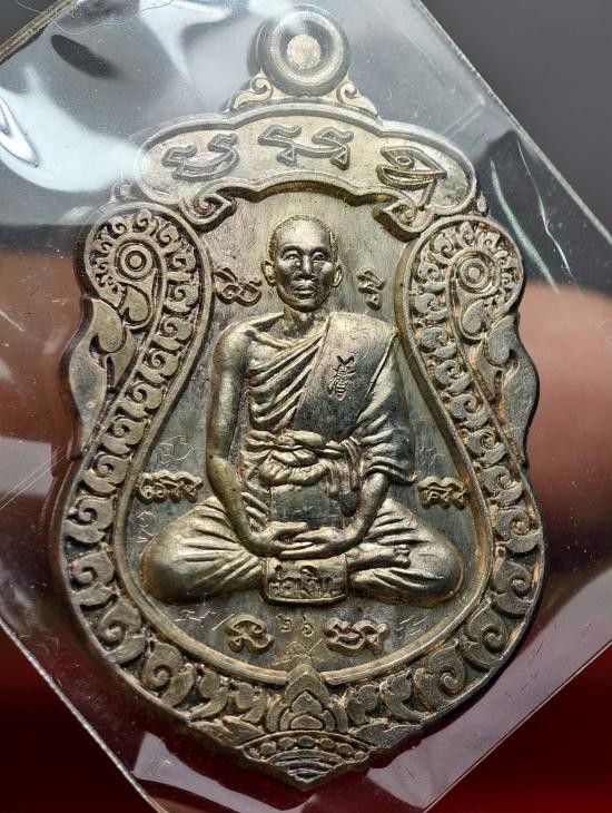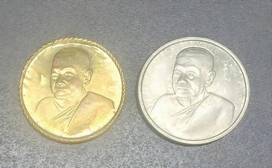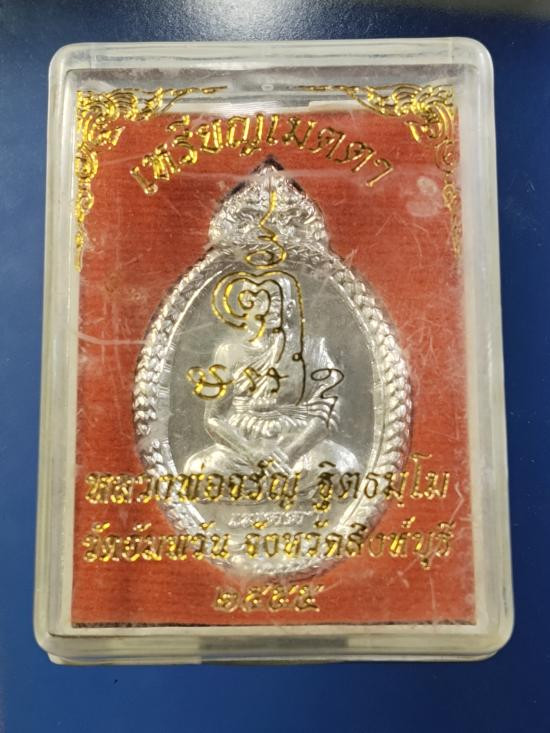 50.-/// เหรียญเลื่อน พระอาจารย์ต่อ วัดมณีวงศ์ จ.นครนายก เนื้อเงิน หนัก 13 กรัม พร้อมกล่อง มีรอยจาร |