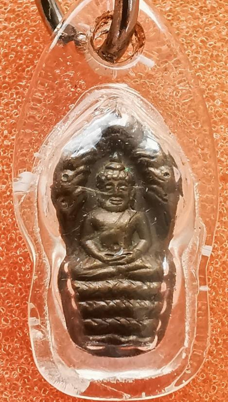 วัดใจ เคาะแรกแดง.เลี่ยมเลเซอร์ งานไม้มงคล (ไม้พยุง) กันน้ำแกะสลักลาย พร้อมใช้..พระนาคปรกใบมะขามหลวงปู่หงษ์ พรหมปัญโญ จ.สุรินทร์ เนื้อตะกั่งหลังเรียบ มีรอยจาร |