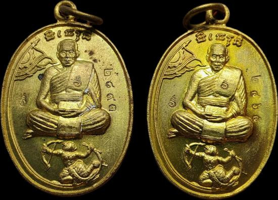 วัดใจ....เหรียญงบน้ำอ้อย ยุคต้น หลวงปู่นาม วัดน้อยชมภู่ ทีเดียว 2 เหรียญ |