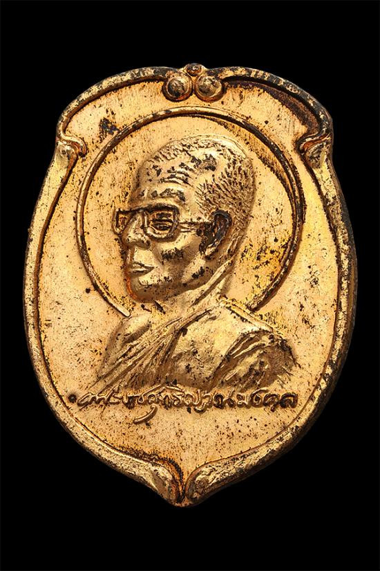เหรียญสี่เหลี่ยมรูปเหมือน หลังยันต์เกราะเพชร ขนาดเล็ก เนื้อทองเหลือง สร้างเป็นที่ระลึก แซยิด 76 ปี ในปี 2539 |