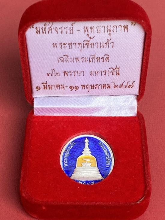 เคาะเดียวแดง พระธาตุเขี้ยวแก้ว เฉลิมพระเกียรติ เนื้อ เงินลงยาสีน้ำเงิน หนัก 10กรัม |