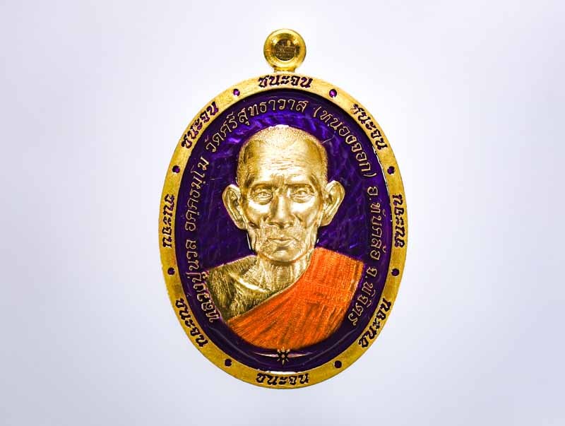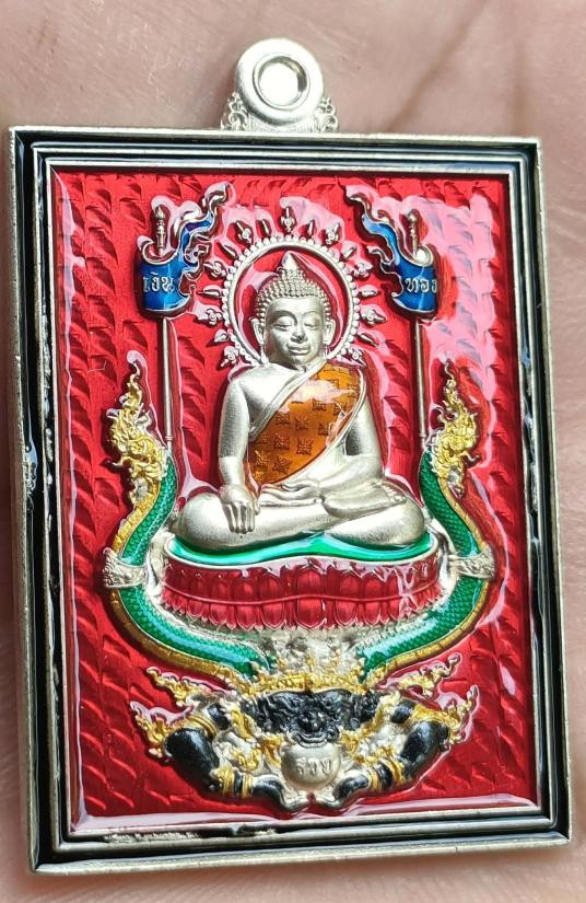 เหรียญนั่งพาน รุ่น ทองชนะมาร หลวงพ่อทอง วัดบ้านไร่ จ.นครราชสีมา พ.ศ.2565 เนื้อเงินลงยา 4 สี ตอก 2 โค๊ต ตอกเลข เลี่ยมกันน้ำพร้อม |