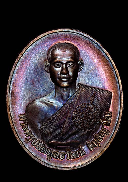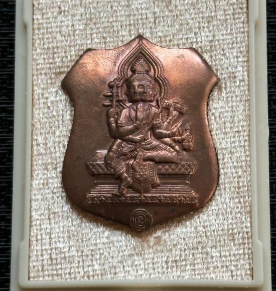 เหรียญท้าวมหาพรหม เจ้าสัวพันล้าน (จัดสร้างโดยบอย ท่าพระจันทร์) เนื้อทองแดงผิวรุ้ง ลงยาพื้นดำ ขอบขาว หมายเลข 1195 |