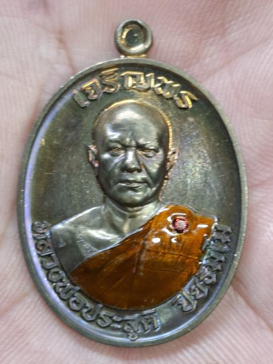 หลวงพ่อรุ่ง วัดท่ากระบือ ปี 2552 เนื้อเงินลงยา |