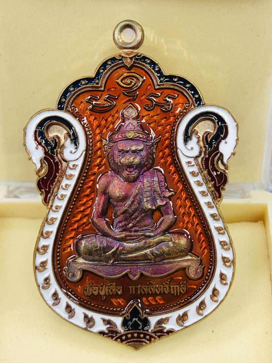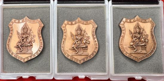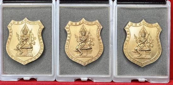 เหรียญท้าวมหาพรหม เจ้าสัวพันล้าน (จัดสร้างโดยบอย ท่าพระจันทร์) เนื้อทองแดงผิวรุ้ง ลงยาพื้นขาว ขอบแดง หมายเลข |