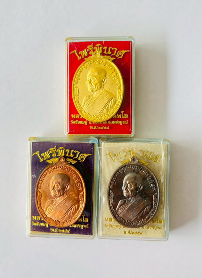 เหรียญ รุ่นเศรษฐีหนองบัว หลวงพ่อพัฒน์ วัดห้วยด้วน นครสวรรค์ 5 เหรียญ กล่องเดิม |