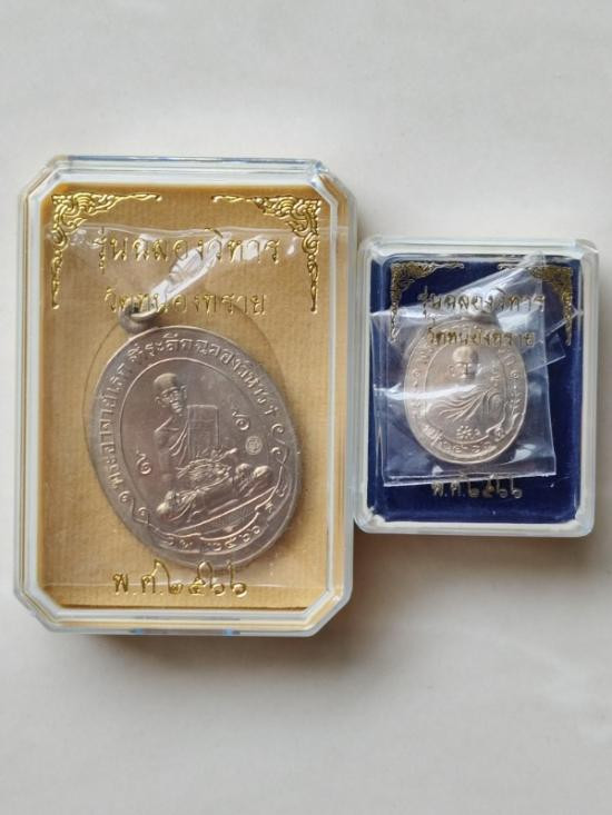 วัดใจยกคู่...เหรียญฉลองวิหาร พระอาจารย์อดิเรก วัดหนองทราย เนื้ออัลปาก้า พิมพ์ใหญ่และพิมพ์เล็ก ปี 2566 พร้อมกล่องเดิมครับ |