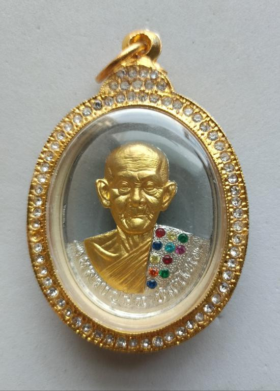 เหรียญยอดรวยรวย (เหรียญยืน 2 ) หลวงปู่ศิลา สิริจันโท เนื้อเงินหน้ากากทองคำ |