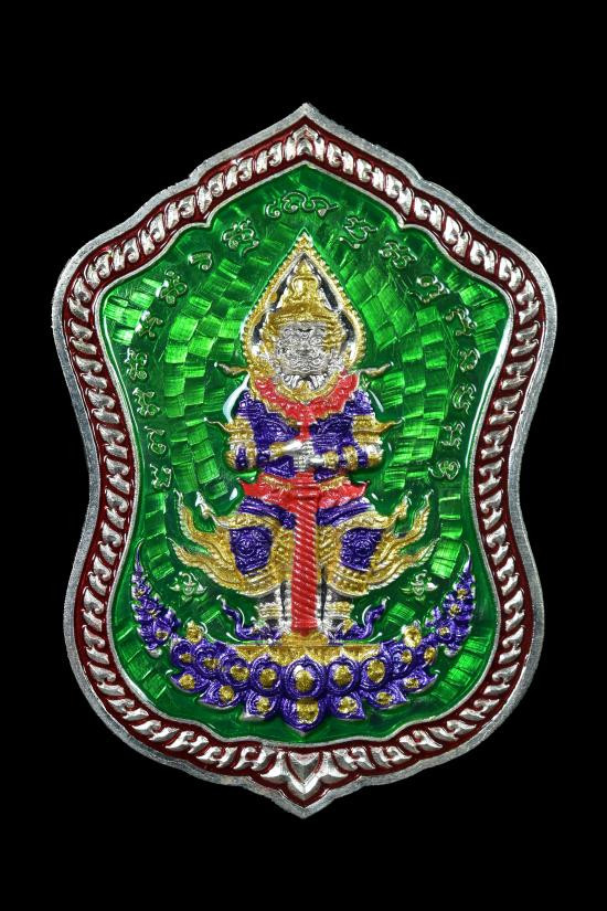 เหรียญท้าวเวสสุวรรณ หลังพญาครุฑ รุ่นมหาบารมีสุวรรณ หลวงพ่อพัฒน์ วัดห้วยด้วน เนื้อเงิน ลงยาหน้า - หลัง ตอกโค้ด ง. องค์นี้หมายเลข ๑๓๓ น้ำหนัก 18.23 กรัม มีกล่องเดิม |