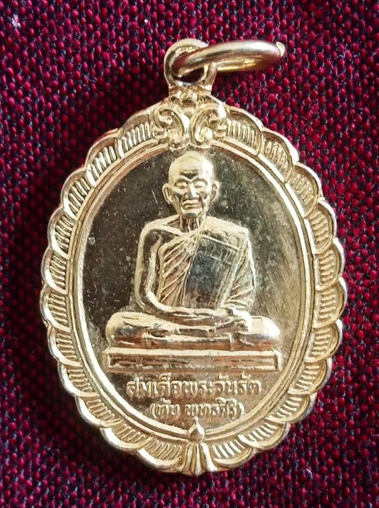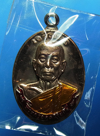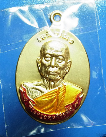 เหรียญ เจริญพร ห่วงเชื่อม หลวงพ่อเอื้อน วัดวังแดงใต้ จ.อยุธยา ปี 2559 พิมพ์ใหญ่ เนื้อกะไหล่ทองลงยา |