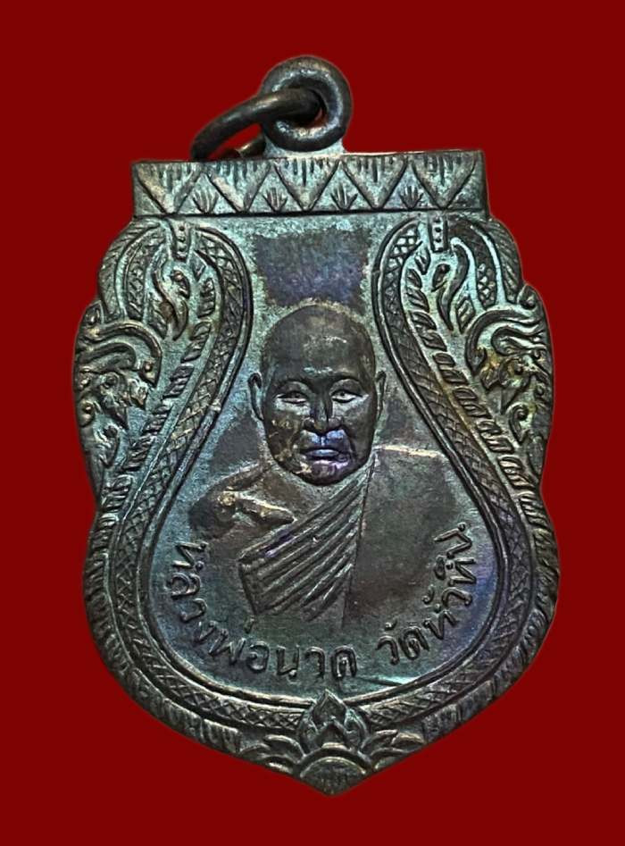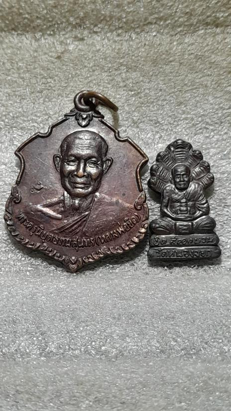 เหรียญเมตตามหาลาภหลวงปู่นามวัดน้อยชมภู่เนื้ออัลปาก้า2เหรียญเคาะเดียวแดงครับ |