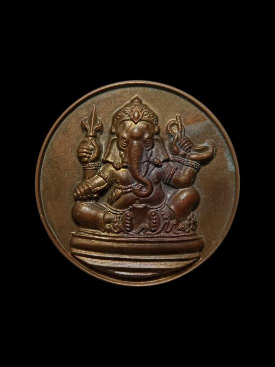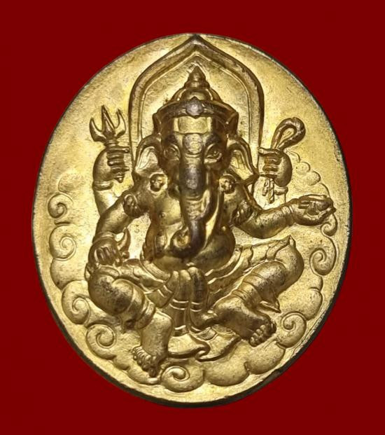 เหรียญพระพิฆเนศวร์ นำโชคสู่เกษตรกรไทย รุ่นกู้ชาติ เนื้อกะไหล่ทอง อย่างสวย แอ๊ดเทวดา เจ้าพ่อหนังกลางแปลงไทย จัดสร้าง รูปแบบด้านหน้าและด้านหลัง ใช้แบบการจัดสร้างจากเหรียญพระพิฆเนศรุ่นแรกของกรมศิลปากร |