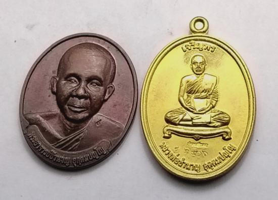 2 เหรียญ เจริญพร ห่วงเชื่อม หลวงพ่อเอื้อน วัดวังแดงใต้ จ.อยุธยา ปี 2559 พิมพ์ใหญ่ เนื้อทองแดง |