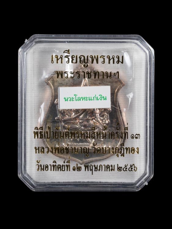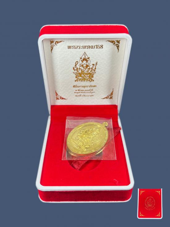 เหรียญพรพระพรหม 168 พิมพ์รูปไข่ เนื้อทองฝาบาตร ตอกนำฤกษ์ หลังอุดมวลสาร จาพนม ยีรัมย์จัดสร้าง |
