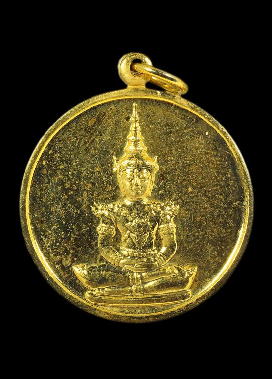 เหรียญหลวงพ่อบ้านแหลม วัดเพชรสมุทรวรวิหาร จ.สมุทรสงคราม ปี 35 เนื้อกะไหล่ทองลงยาแดง |