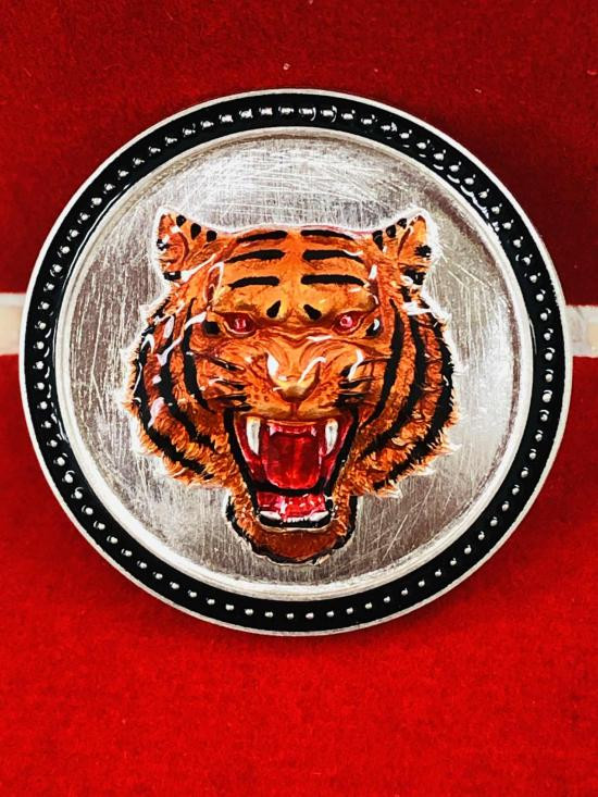 เนื้อเงิน หมายเลข 38 เหรียญกลมพ่อปู่เสือรุ่นแรก หลวงพ่อเกาะ วัดท่าสมอ ชัยนาท ศิษย์หลวงพ่อกวย อาจารย์เทียม วัดหนัง ร่วมปลุกเสก เนื้อเงินลงยาหน้าเสือ ขอบลงยาดำ เหรียญสวยพร้อมกล่อง |